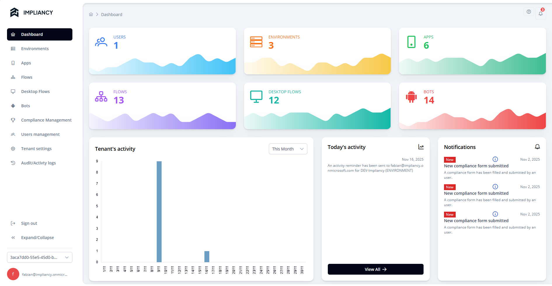 Impliancy removes friction for makers, saves time for admins and makers alike, and provides full visibility for leadership. It gives you the governance completeness of the CoE – without the manual maintenance, complexity, or premium license requirements.